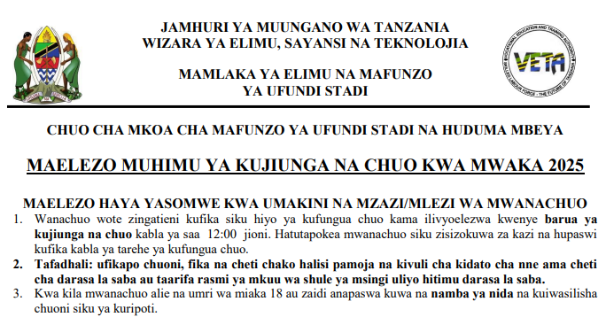 Fomu za kujiunga na VETA kwa mwaka wa masomo 2025-2026 ni nyaraka za muhimu ambazo kila mwanafunzi anayetaka kupata mafunzo ya ufundi stadi nchini Tanzania anapaswa kujaza na kuwasilisha ili kuweza kusajiliwa rasmi kwenye vyuo vinavyomilikiwa na Mamlaka ya Elimu na Mafunzo ya Ufundi Stadi (VETA).